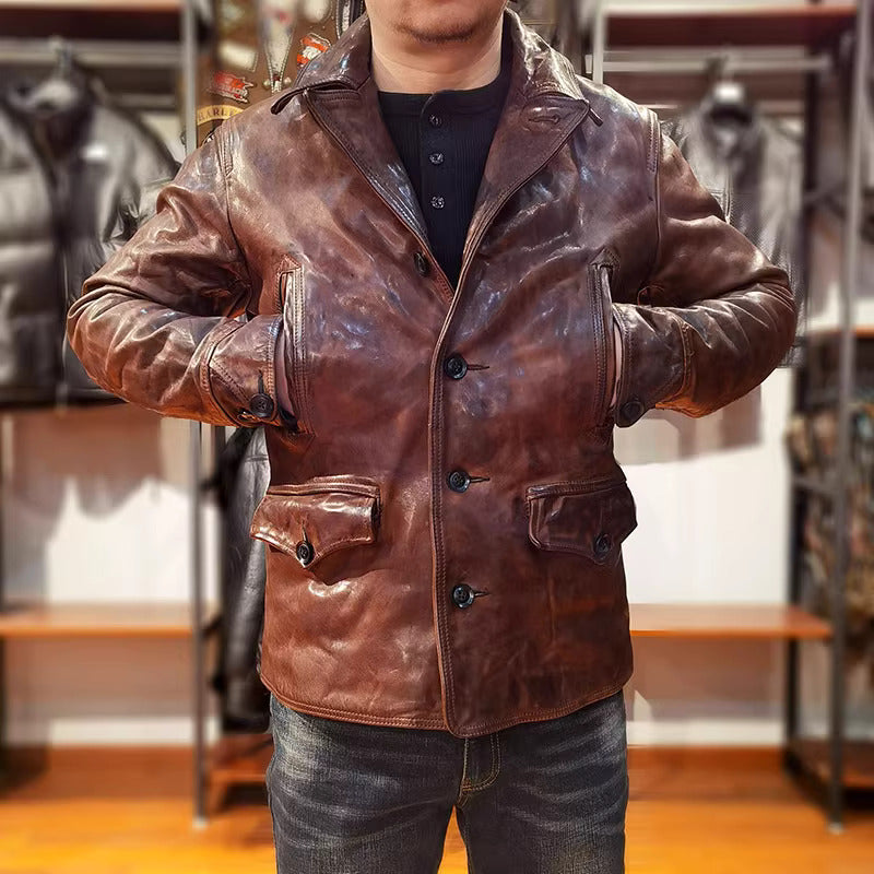 Men's Slim Fit Classic Genuine Cowhide Leather Jacket