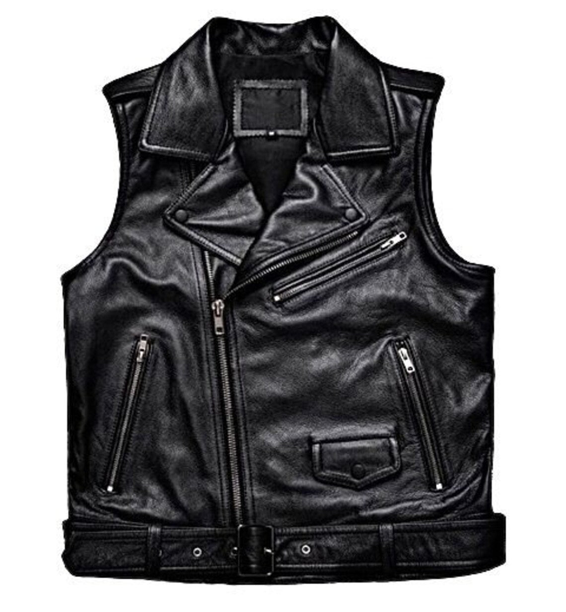 Men's Tan Brown Motorcycle Quilted Cowhide Leather Vest