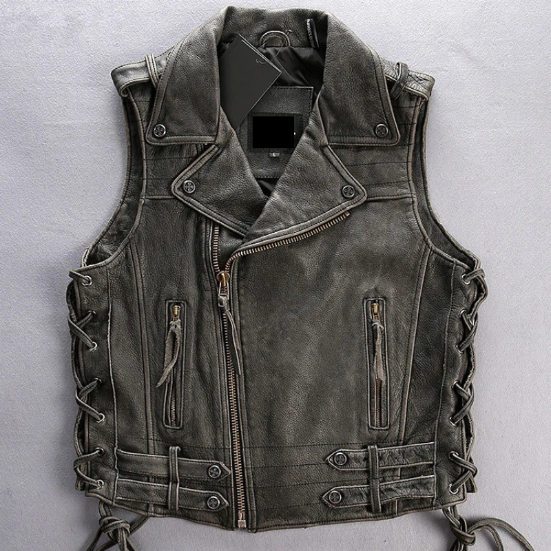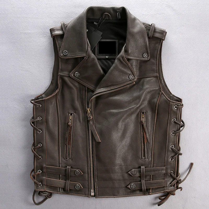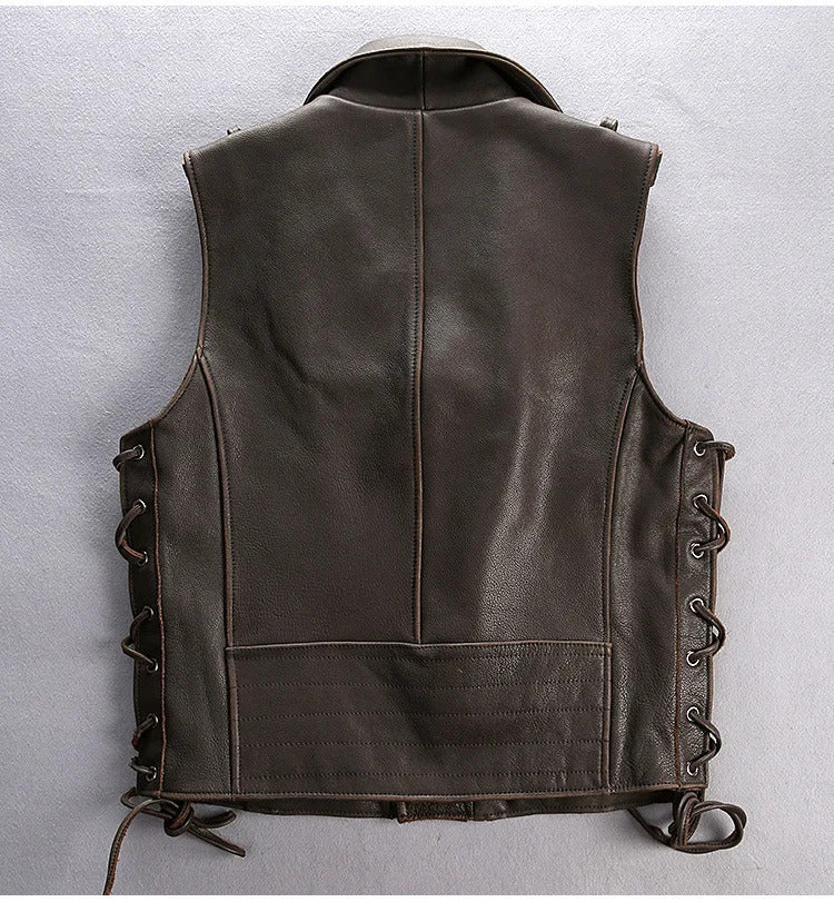 Men's Vintage Cowhide Leather Motorcycle Rider Vest