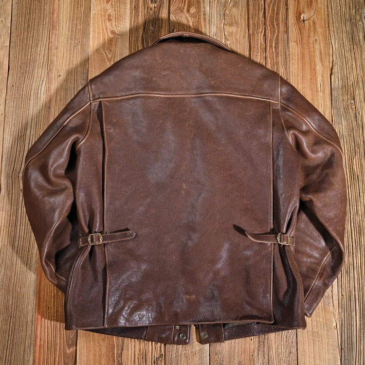 Men's Vintage Sheepskin Leather Motorcycle Jacket - Turn-Down Collar, Long Sleeve, Autumn Punk Style