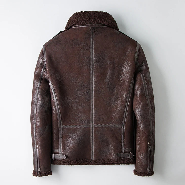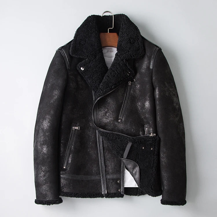 Men's Vintage Genuine Leather Jacket: Classic Rider Style with Sheepskin Shearling Fur