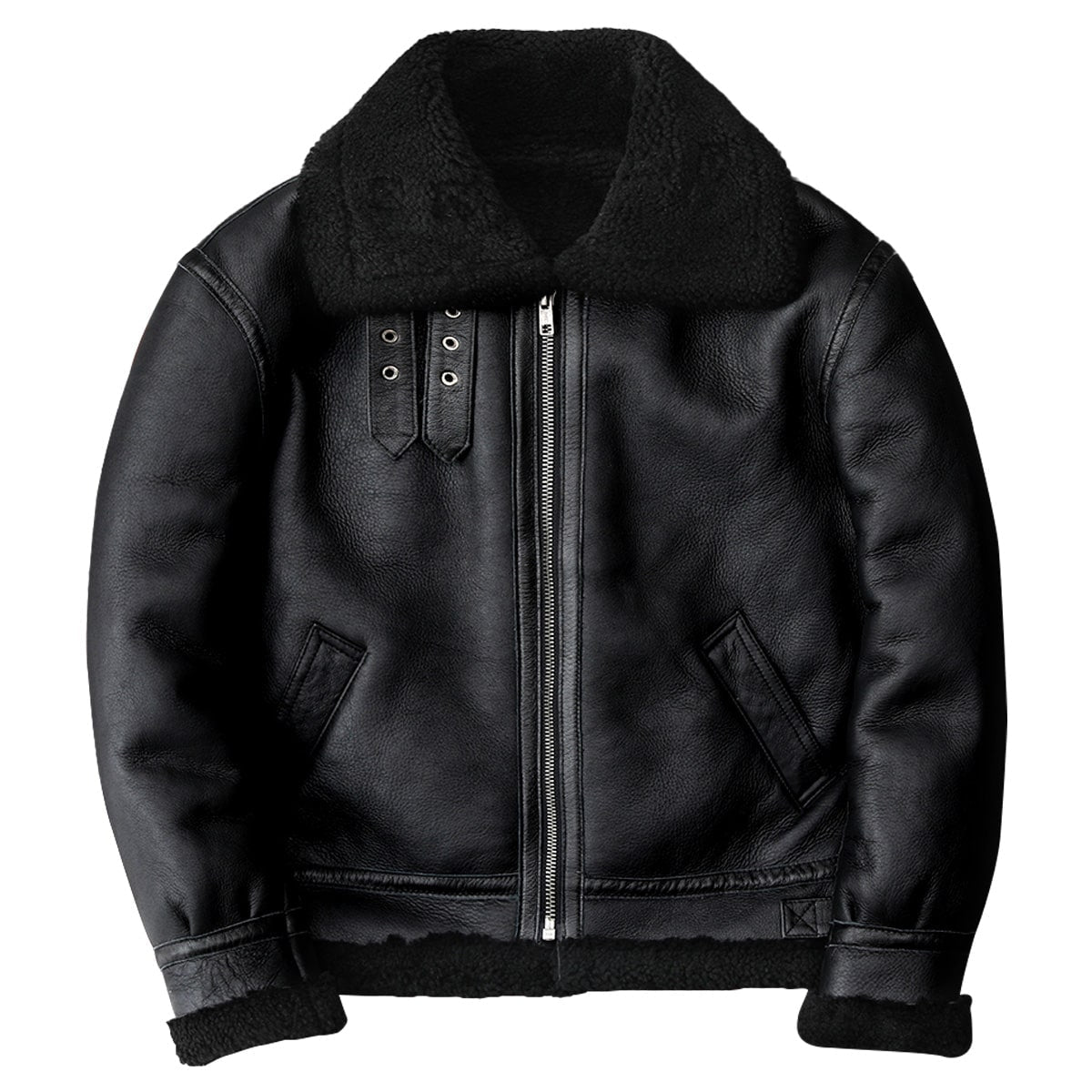 : Men’s Vintage Distressed Black B3 Bomber Genuine Sheepskin Sherpa Shearling Faux Fur Lined Pilot Aviator G1 Military Leather Jacket