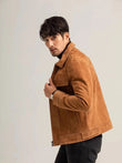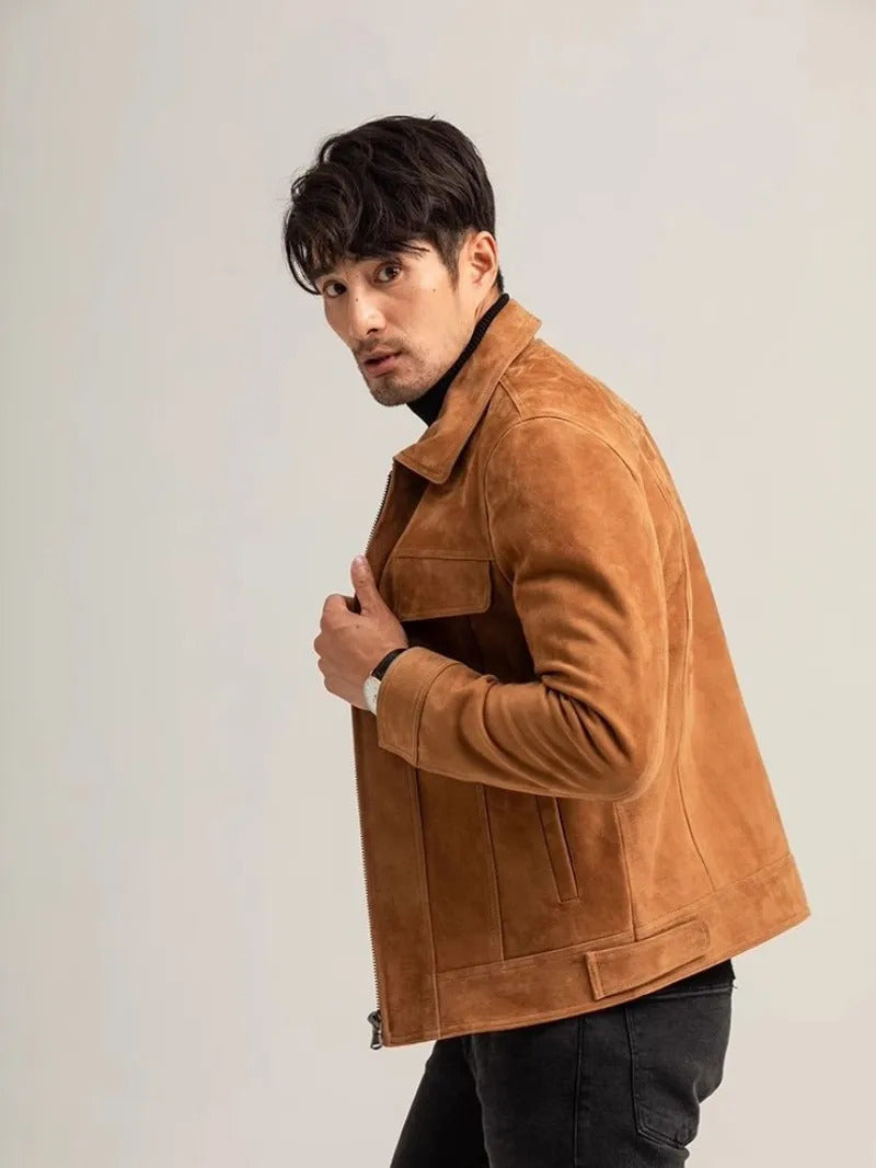 Men's Vintage Suede Sheepskin Motorcycle Jacket Short Coat with Zipper