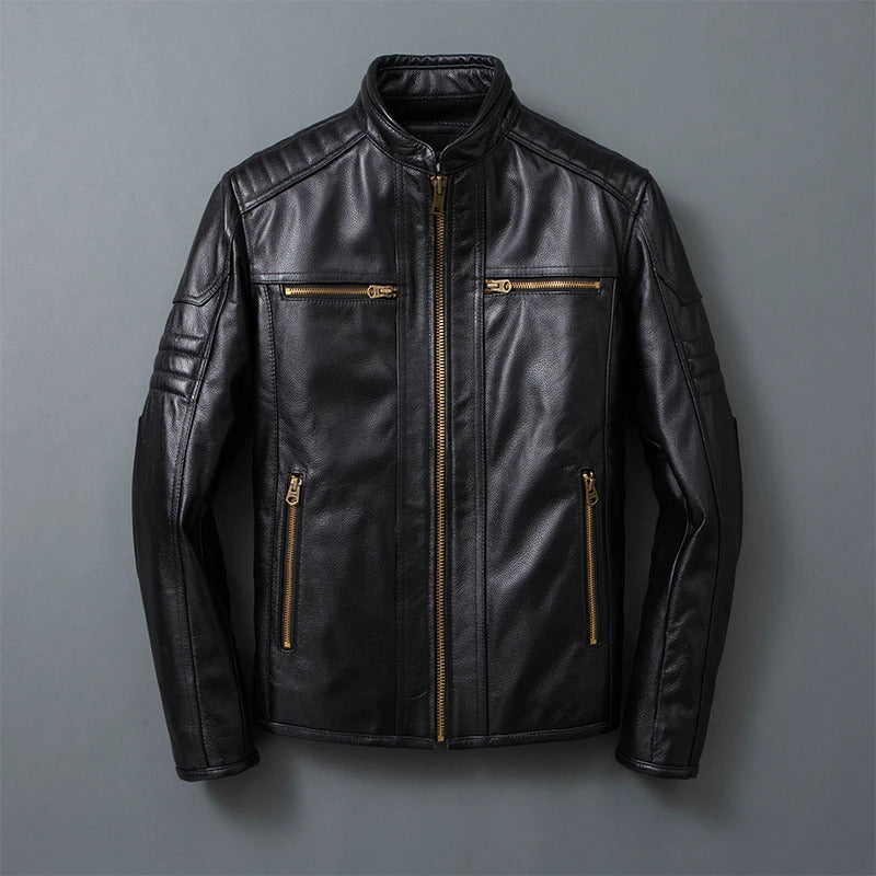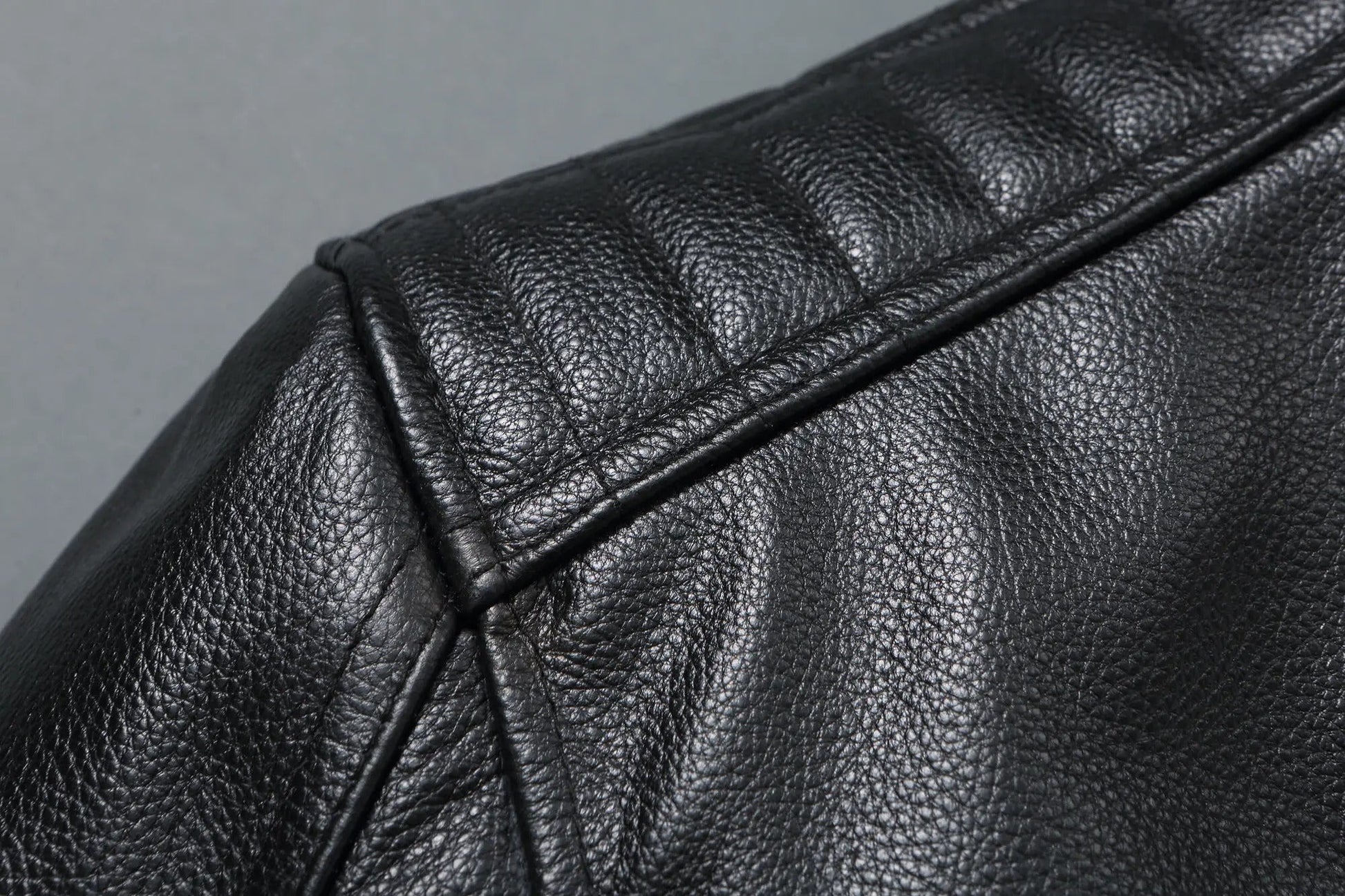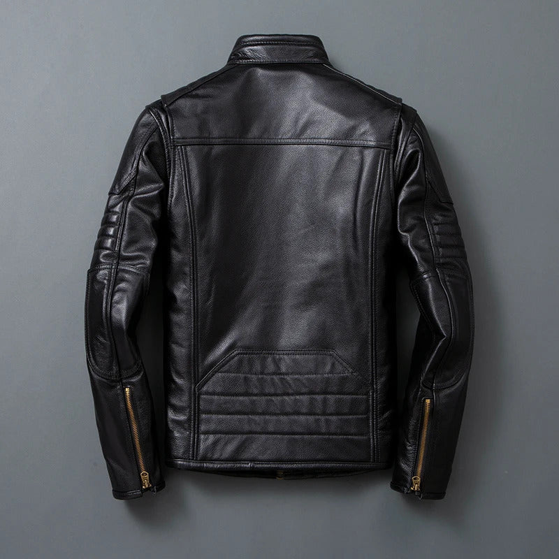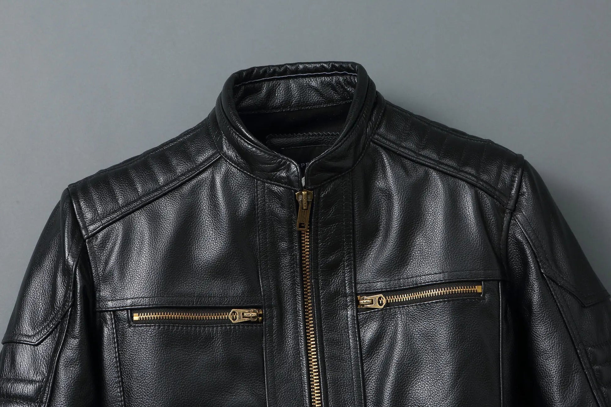 Premium Black Biker Jacket: Classic Men's Genuine Cowhide Leather