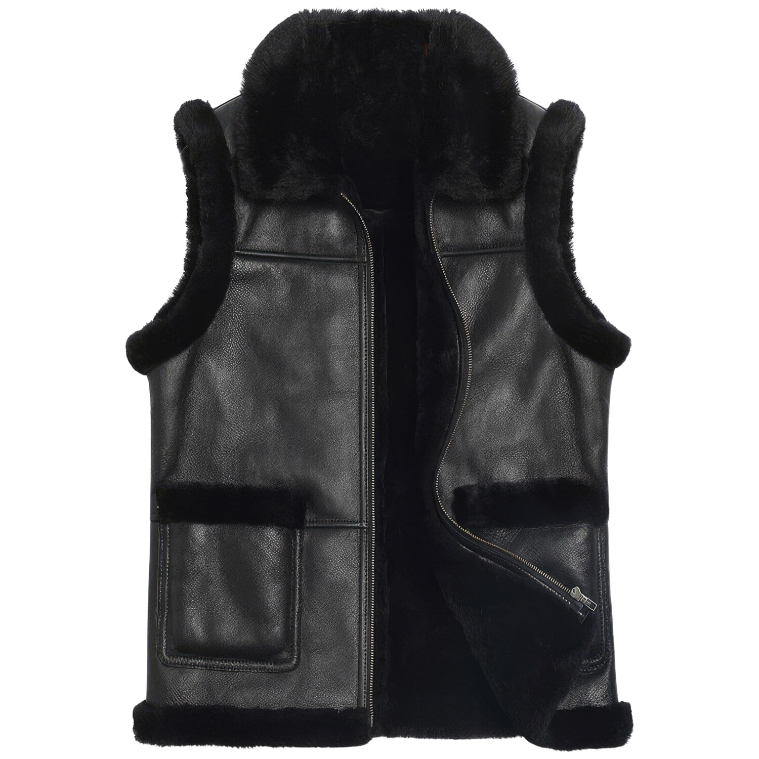 Premium Men's Black Sheepskin Sherpa Shearling Vest: Winter Warmth with Faux Fur Lining