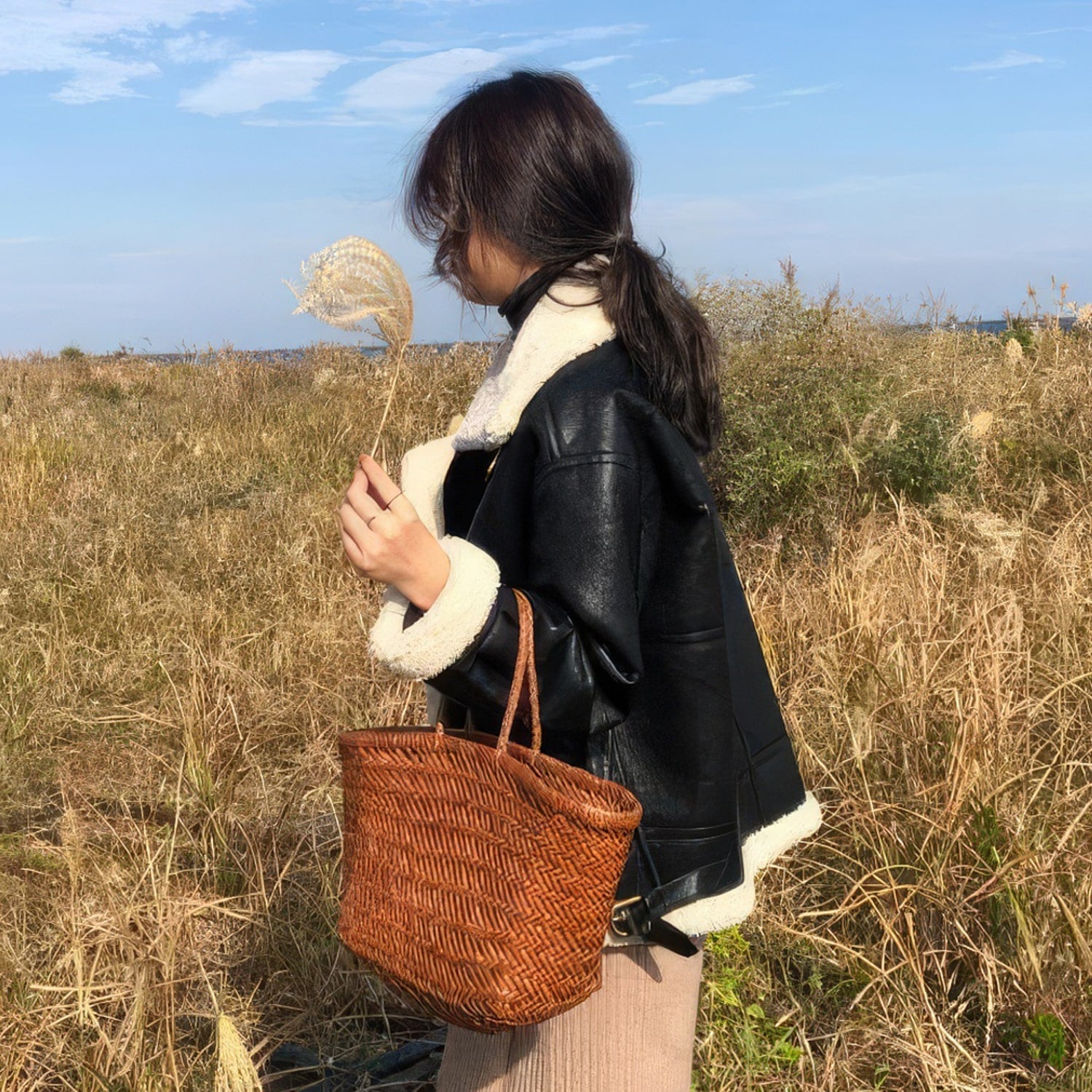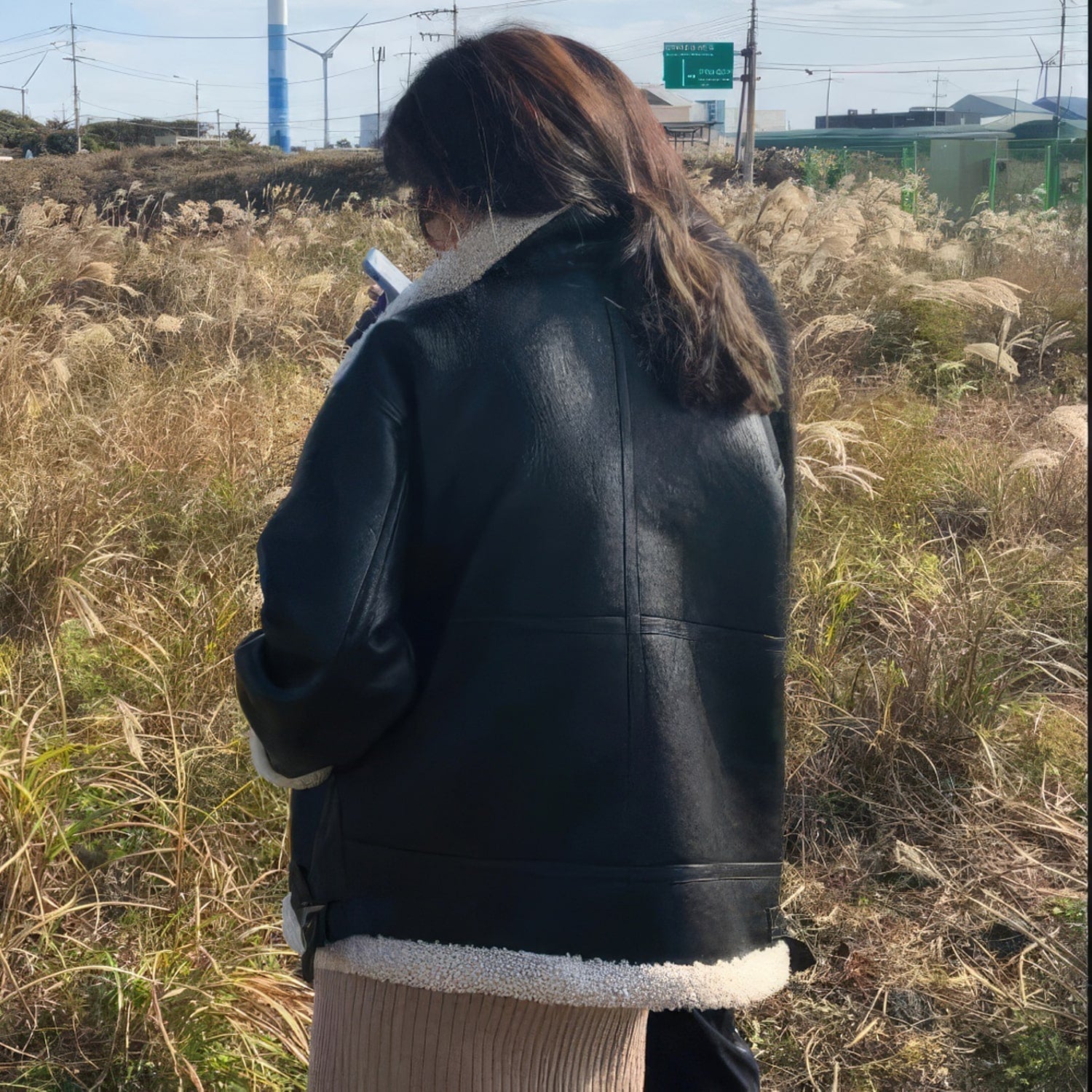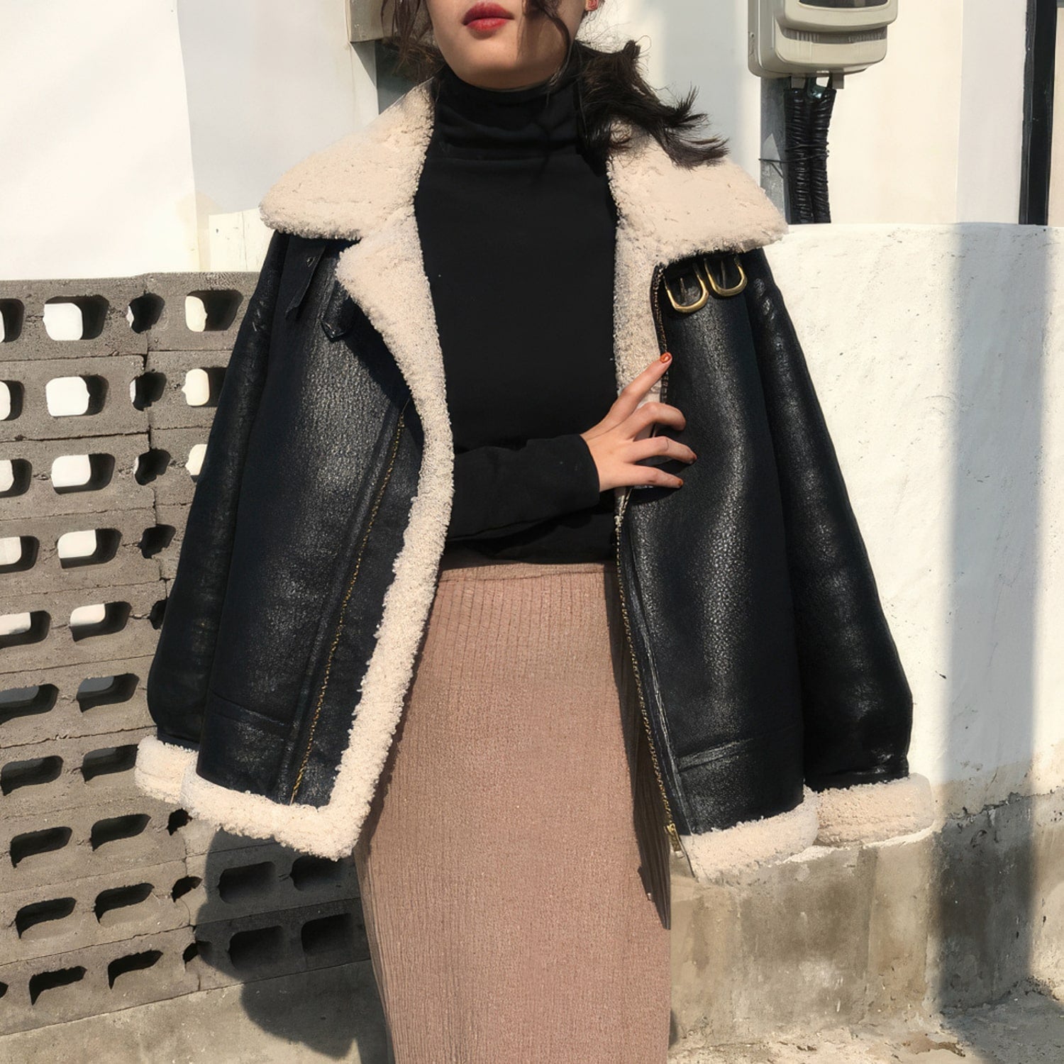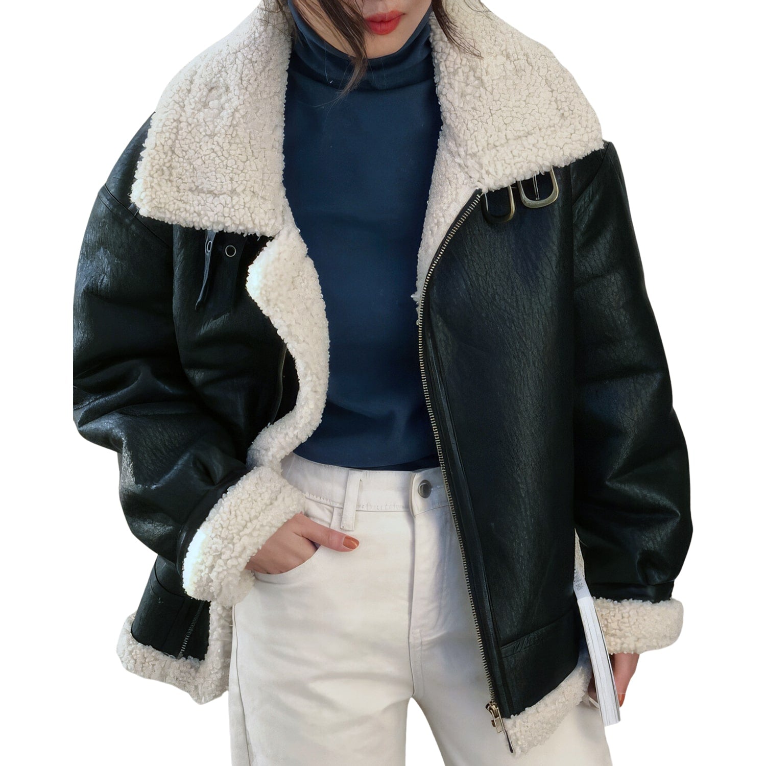 Stylish Women's Black Bomber Leather Jacket with Genuine Sheepskin Shearling & Faux Fur Lining - Perfect for Winter Warmth and Retro Aviator Flair