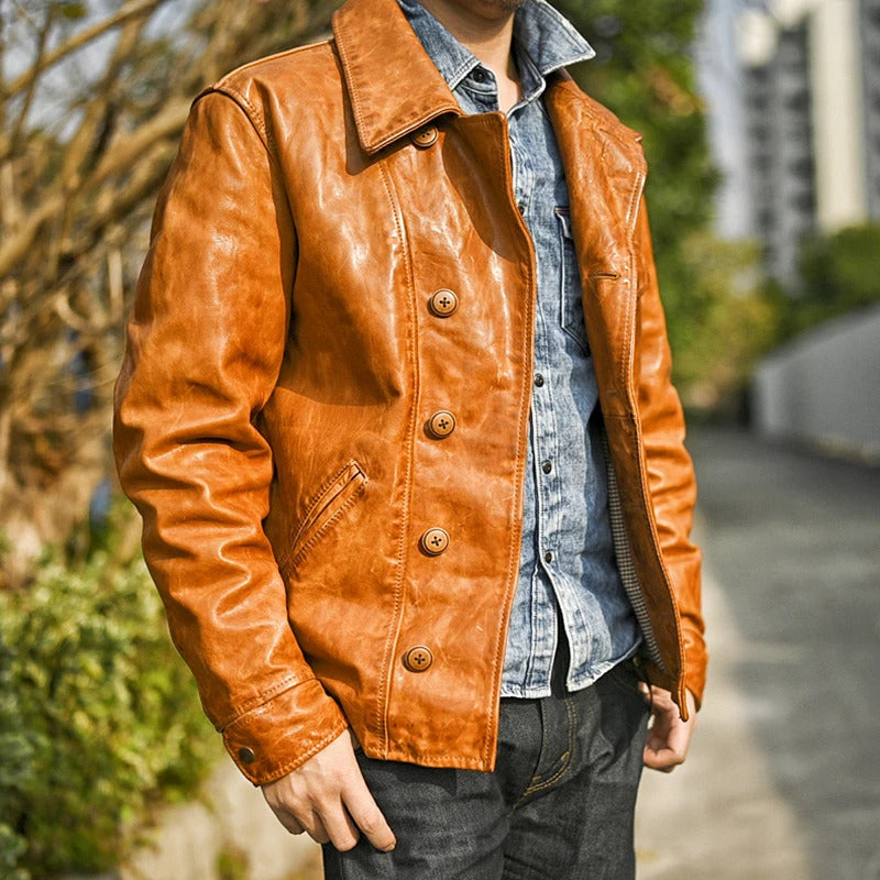 Vintage Genuine Leather Men's Jacket - Heavy Hunting Style