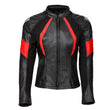 Women’s Black Biker Genuine Cowhide Stand Collar Cycling Protective Red Stripped Slim Fit Moto Racing Four Seasons Leather Jacket