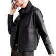 Women’s Black Genuine Sheepskin High Neck Korean Fashion Casual Classic Smooth Lightweight Slim Fit Leather Jacket