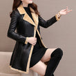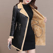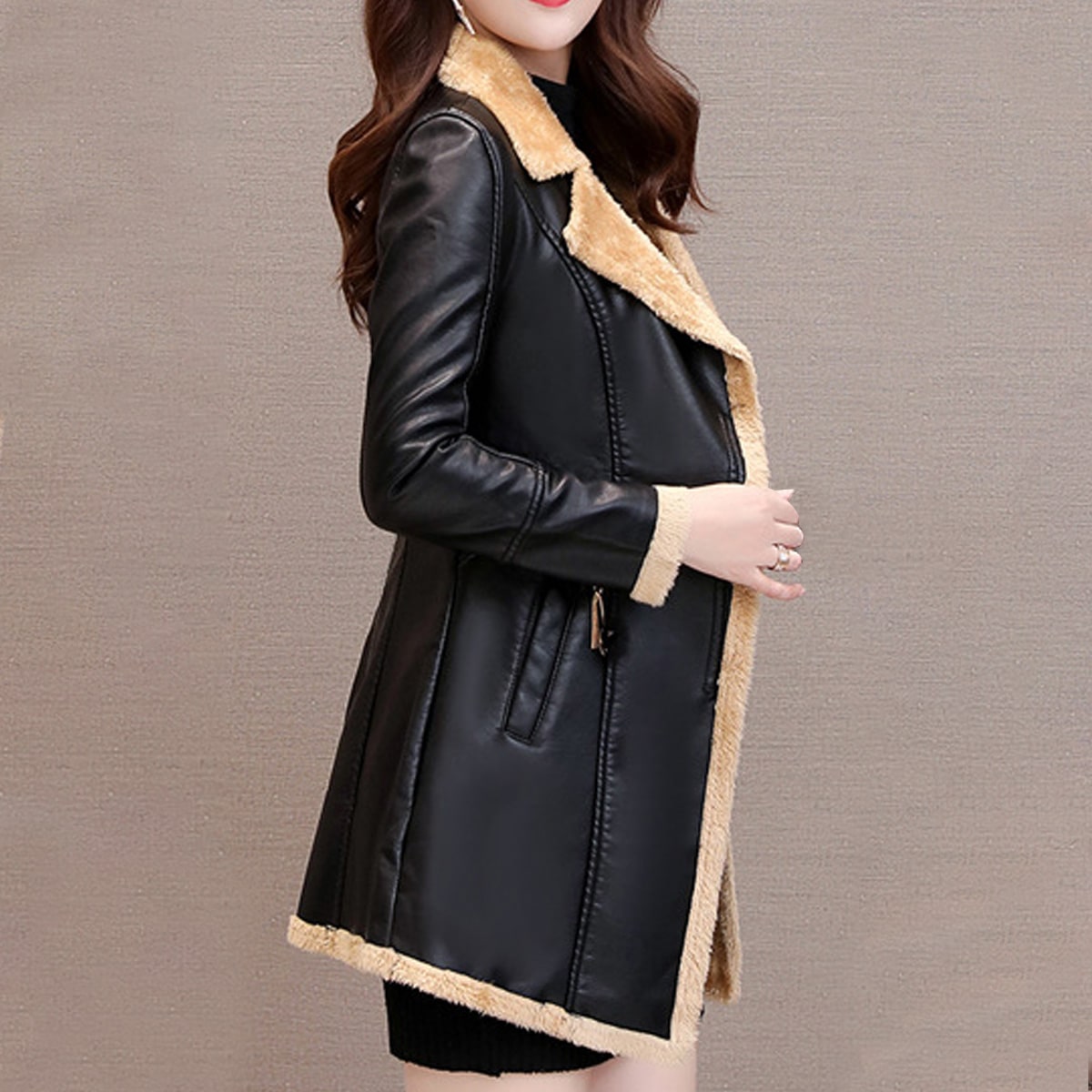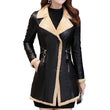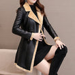Women’s Black Genuine Sheepskin Lapel Collar Sherpa Shearling Faux Fur Lined Thick Warm Casual Classic Single Breasted Trench Style Leather Coat Jacket