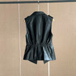 Women’s Black Genuine Sheepskin Notched Lapel Collar Classic Suit Overcoat Spring Autumn Fashionable Leather Sleeveless Vest