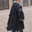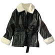 Women’s Black Genuine Sheepskin Sherpa Shearling Faux Fur Lined Belted Winter Warm Casual Fashion Loose Leather Jacket