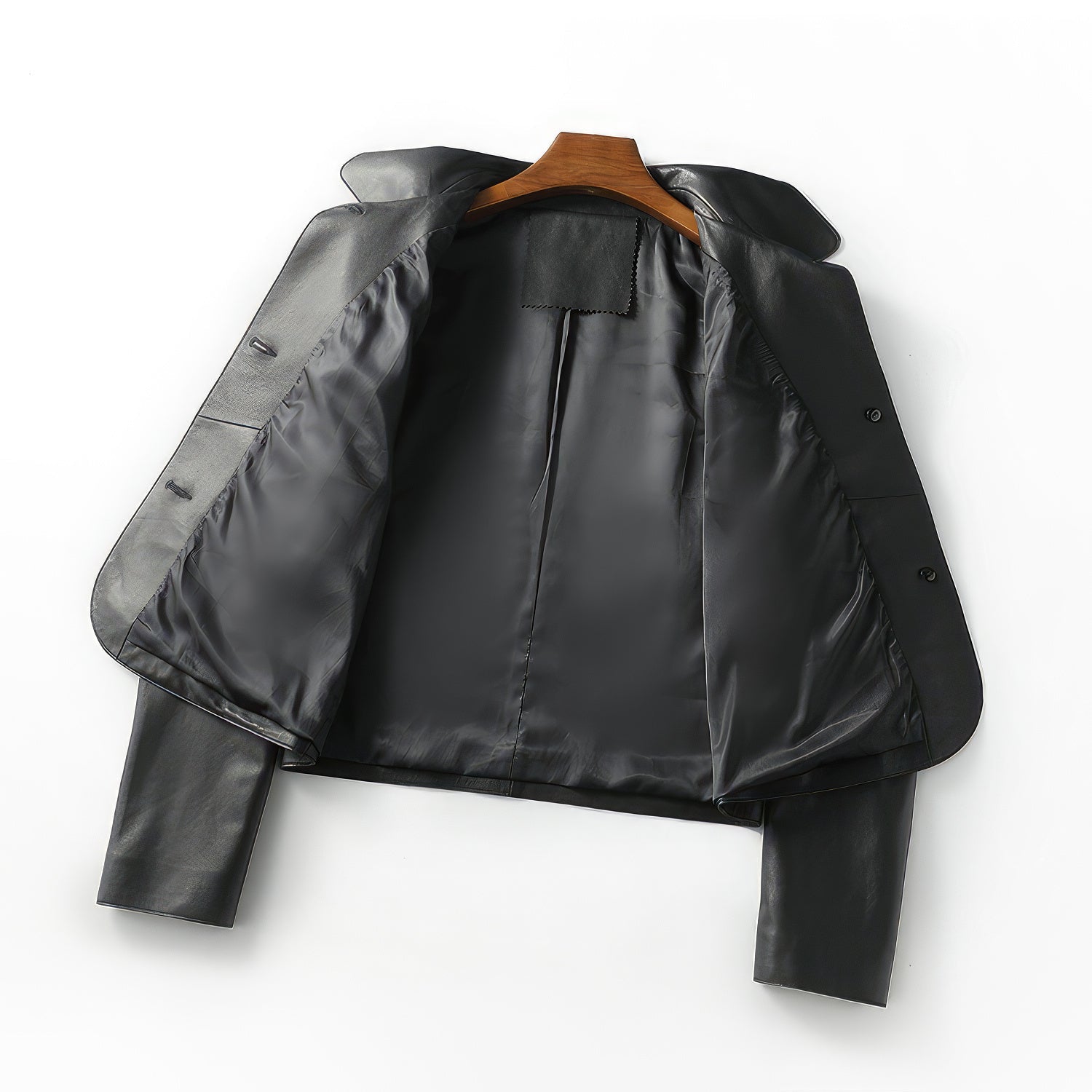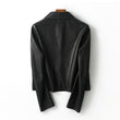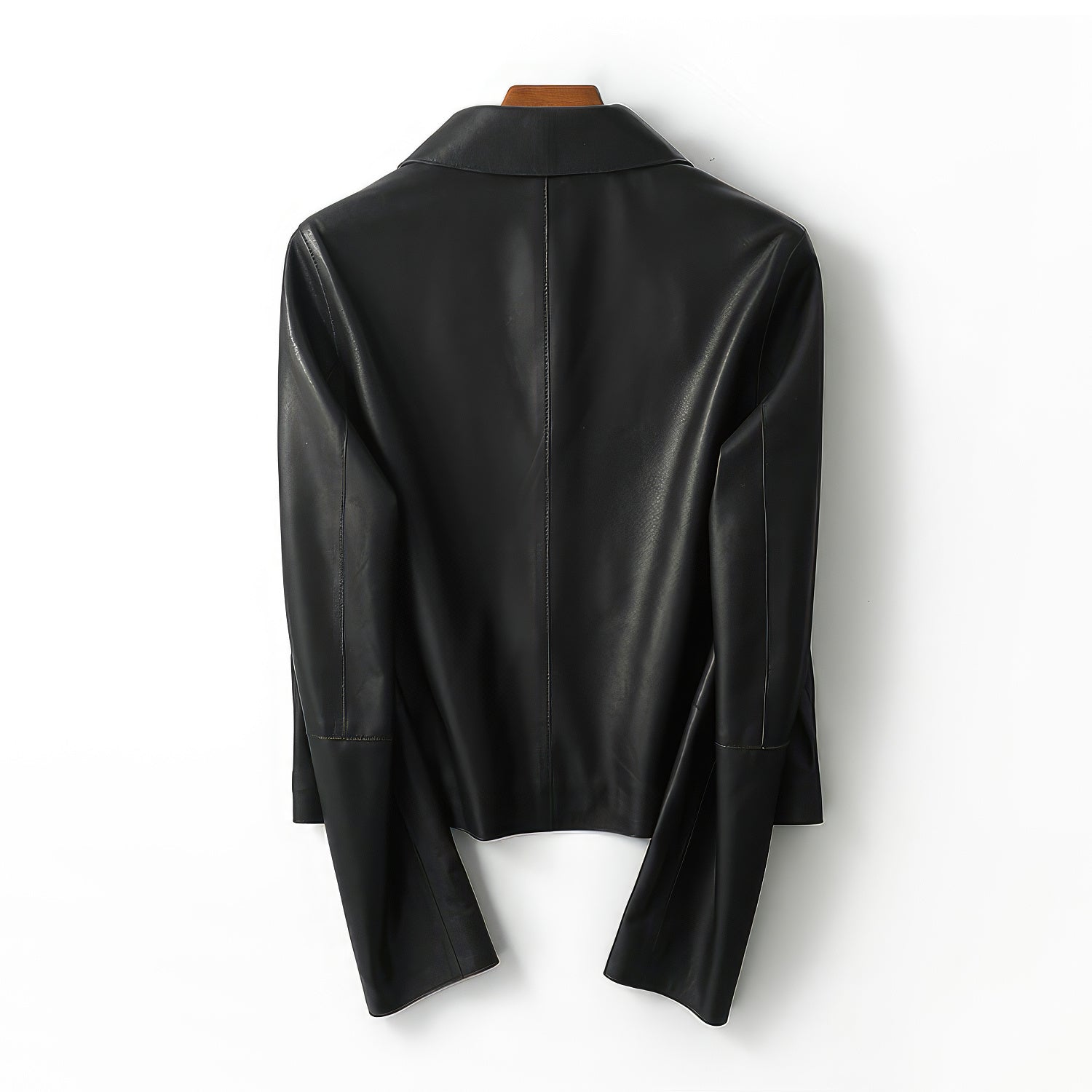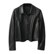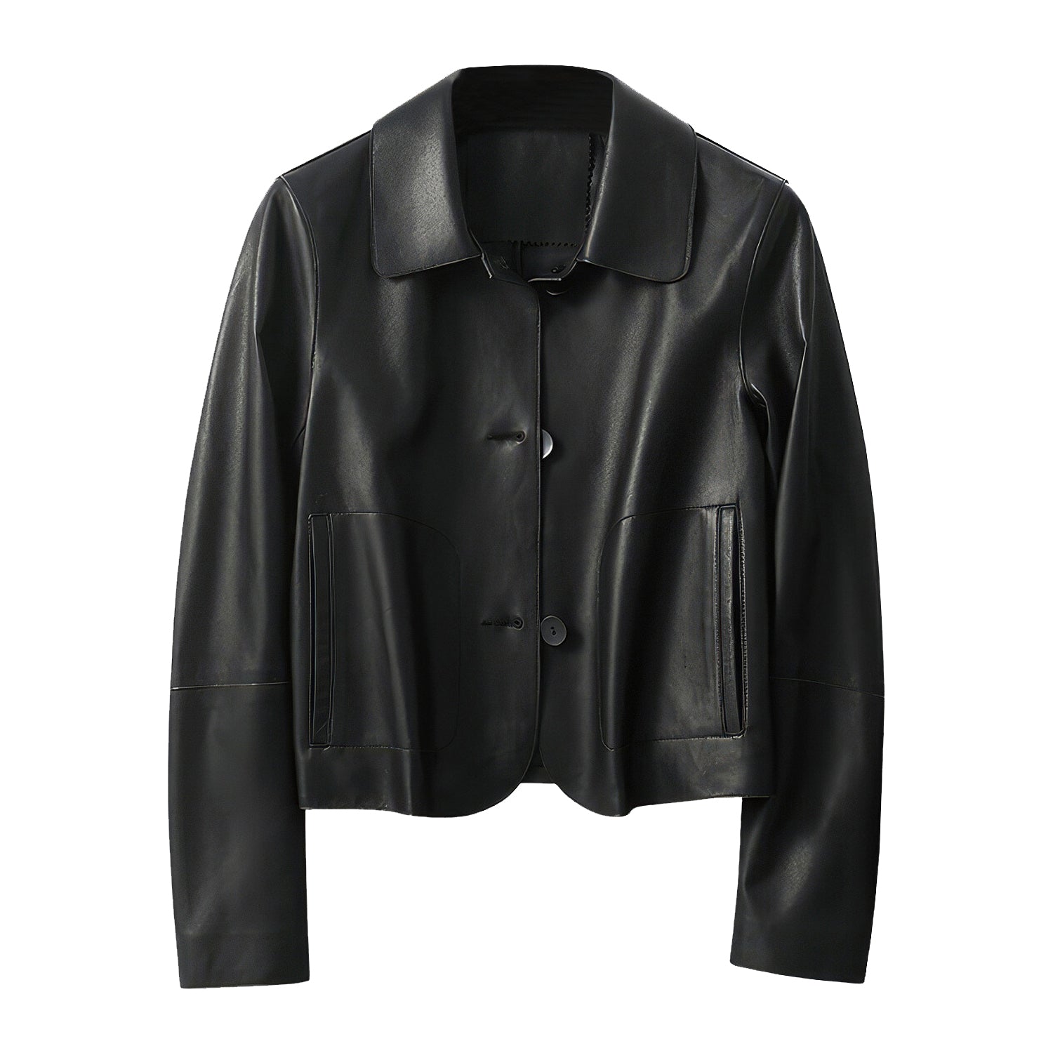 Women’s Black Genuine Sheepskin Shirt Collar Cropped Fashion Classic Style Lightweight Smooth Leather Jacket