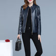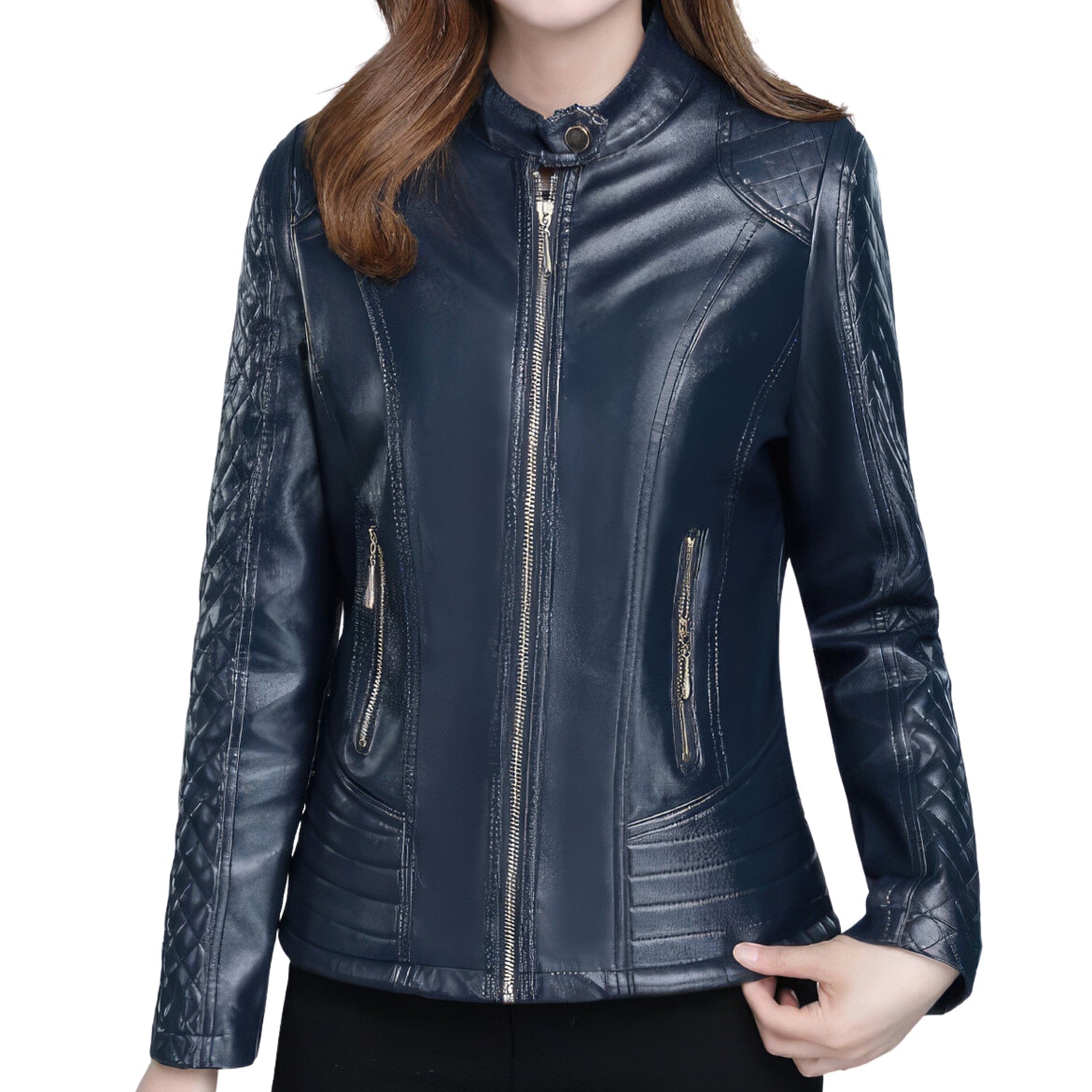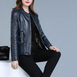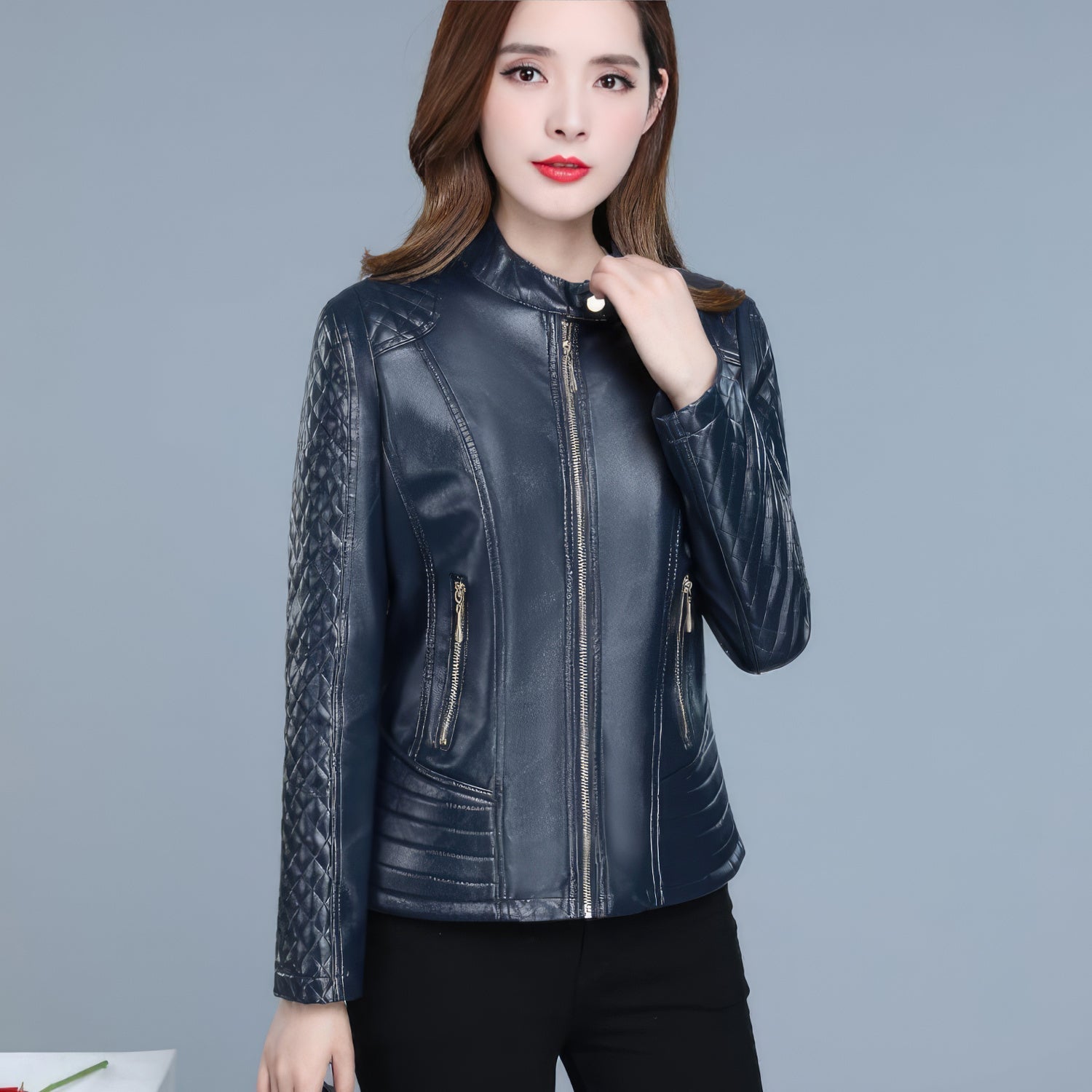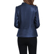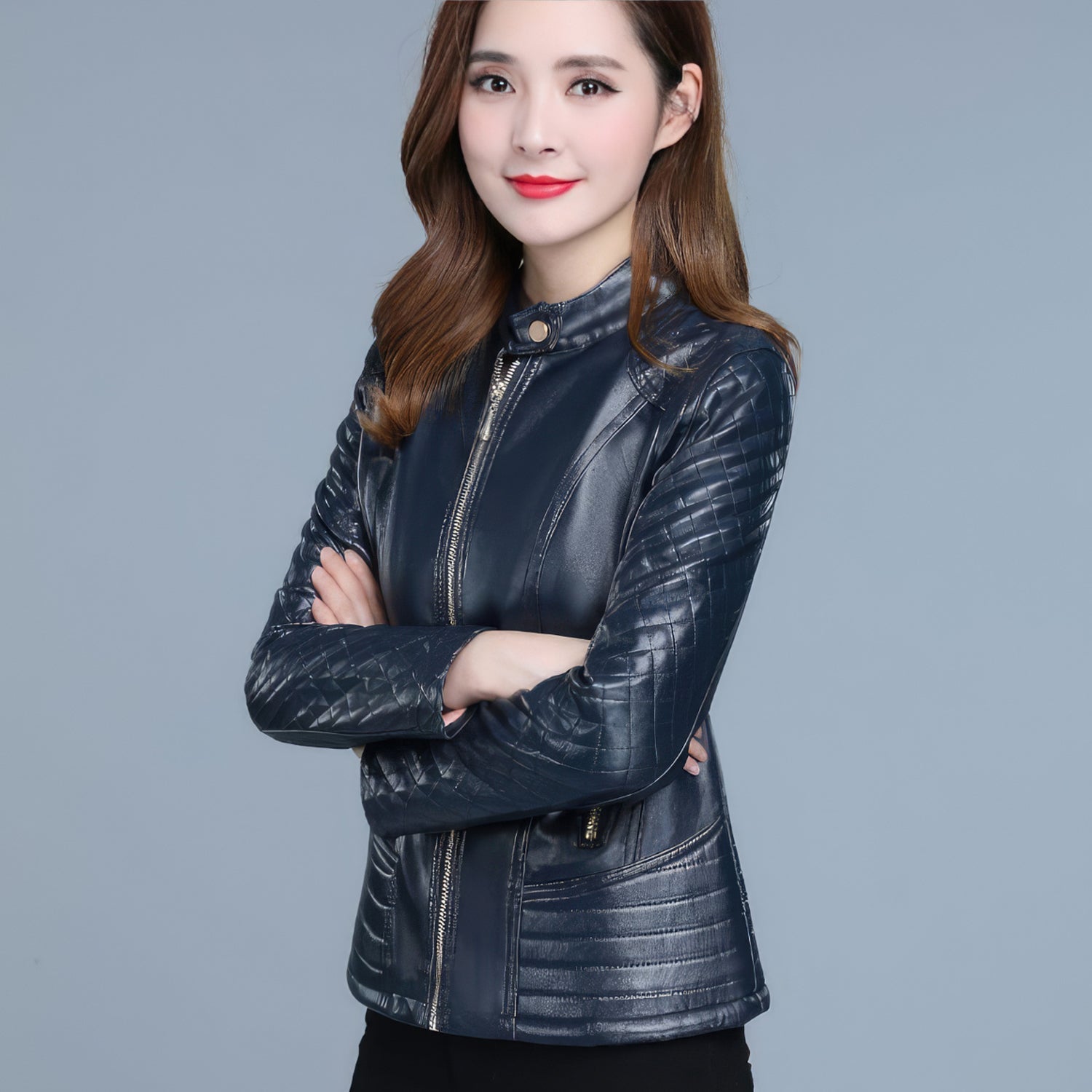 Women’s Blue Genuine Sheepskin Diamond Quilted Sleeves Smooth Lightweight Korean Fashion Slim Fit Retro Leather Jacket