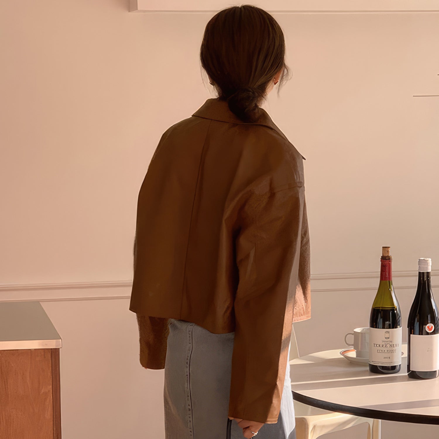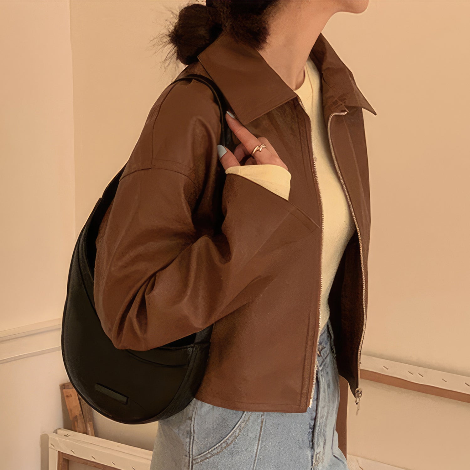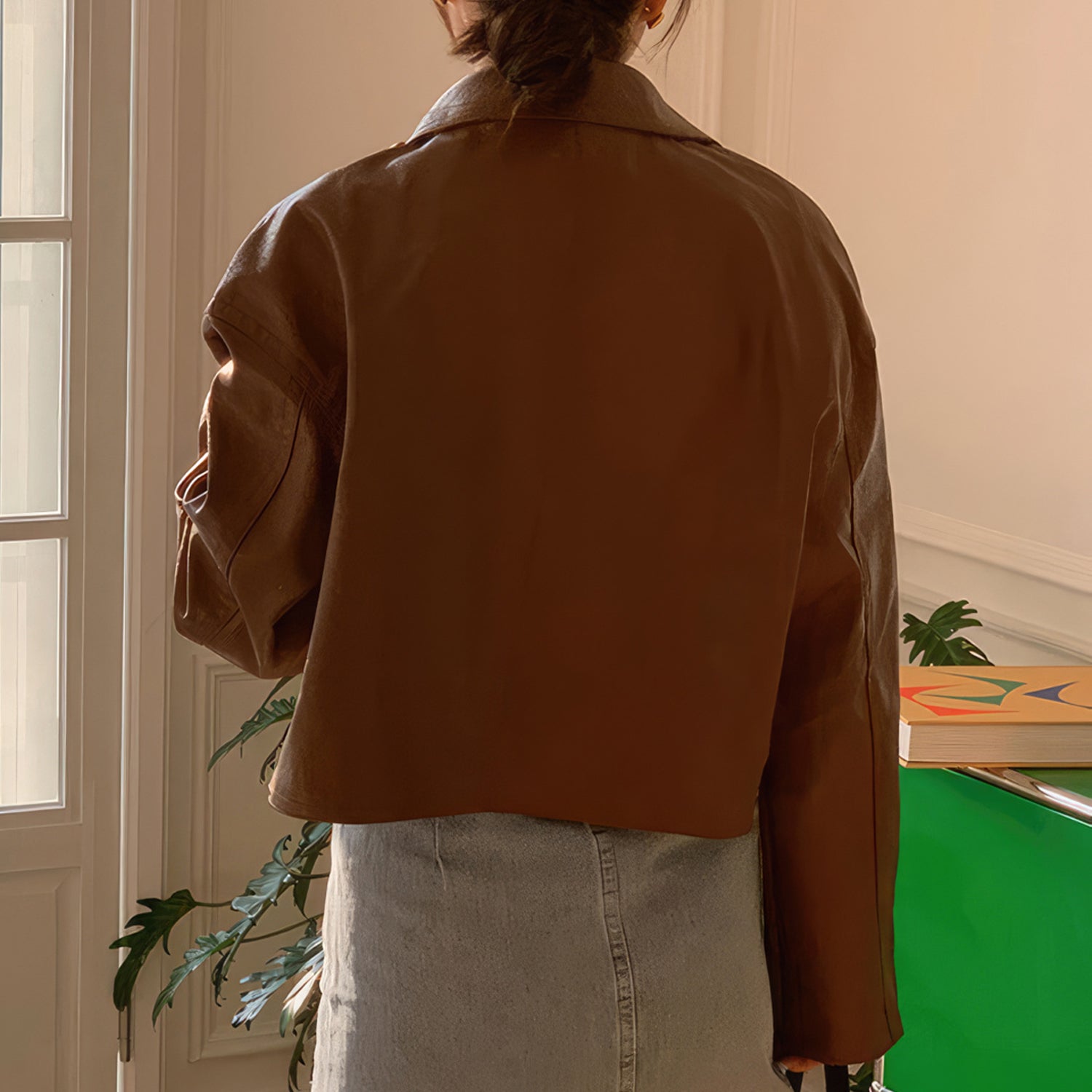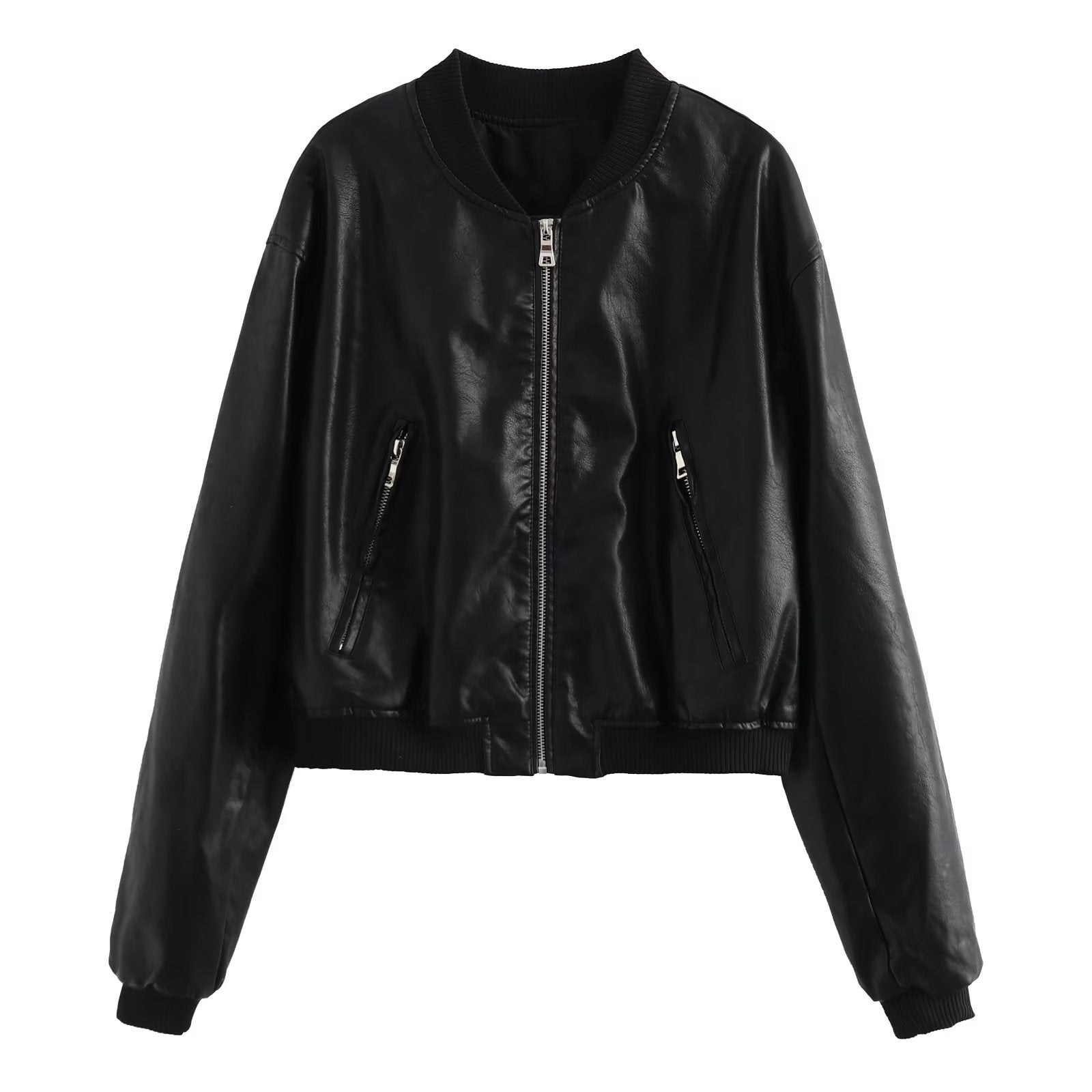 Women’s Genuine Sheepskin Shirt Collar Casual Korean Retro Fashion Chic Retro Zip-Up Smooth Loose Lightweight Leather Jacket