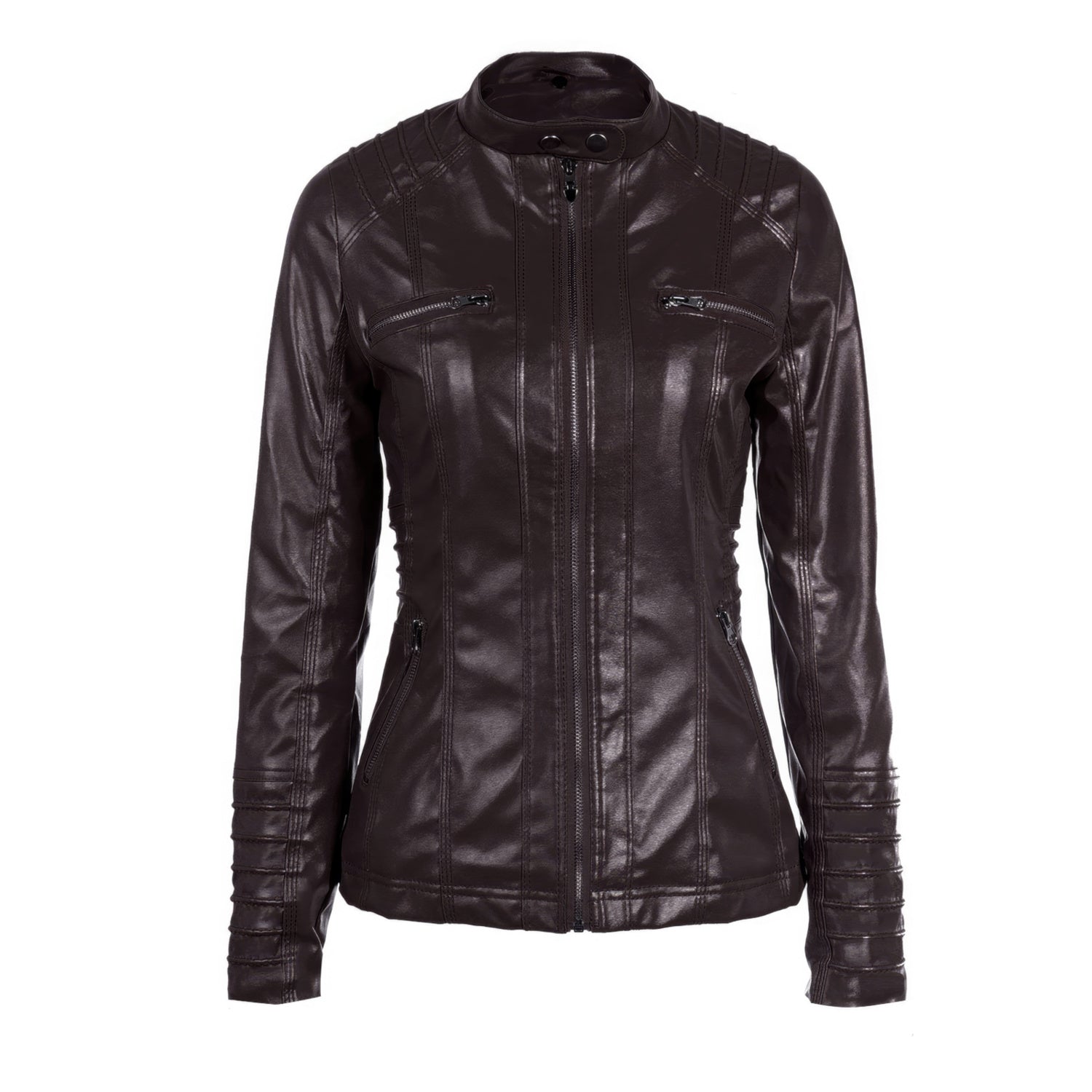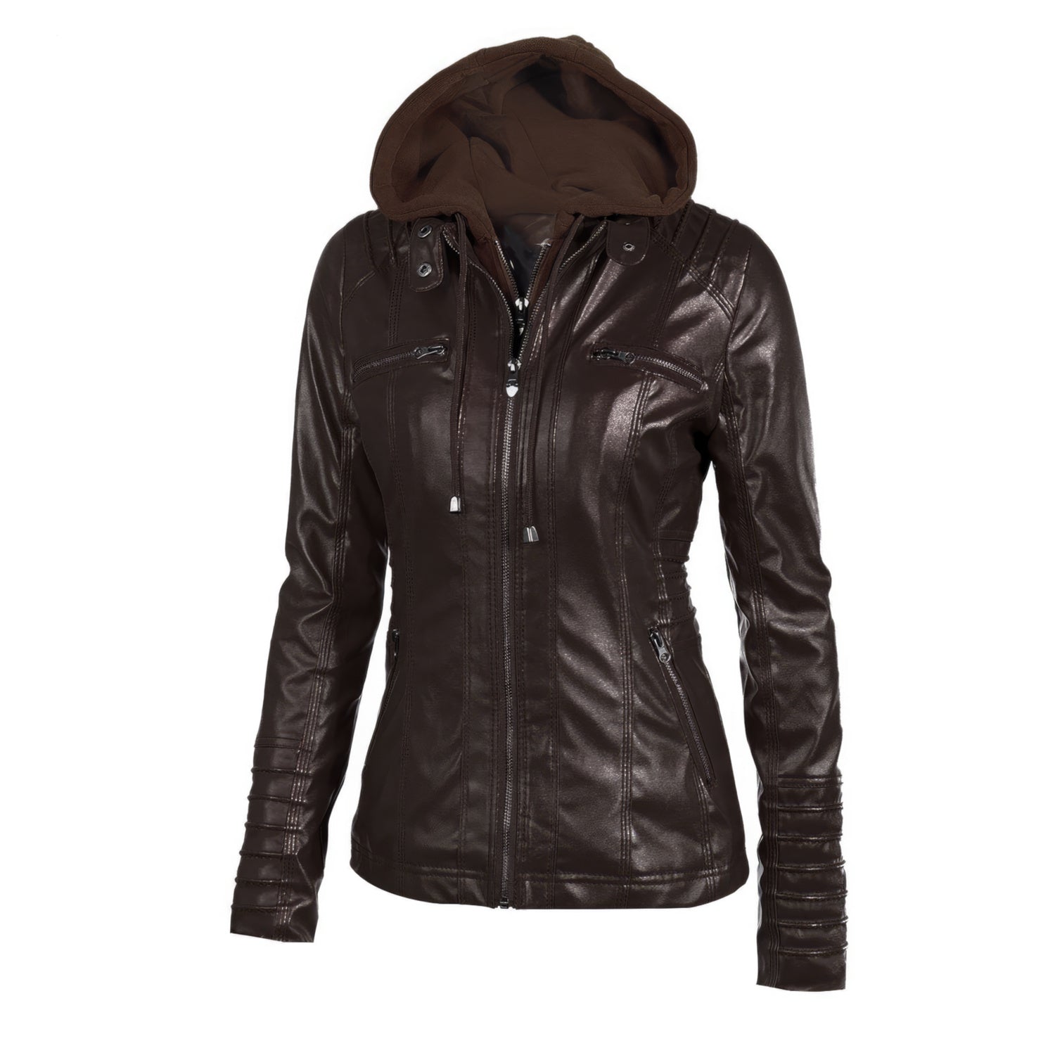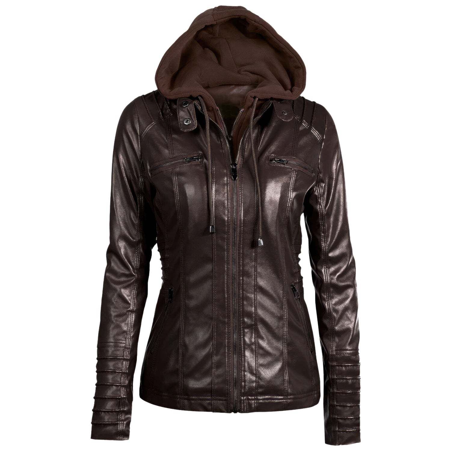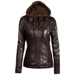Women’s Racer Brown Genuine Sheepskin Detachable Hooded Sporty Moto Scooter Racer Slim Fit Casual Classic Leather Jacket