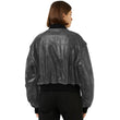Women’s Vintage Grey Bomber Genuine Sheepskin Cropped Fashion Classic Sporty Zip-Up Outfit Short Loose Casual Smooth Leather Jacket