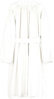 Women’s White Genuine Sheepskin Pleated Neckline Loose Luxury Casual Korean Fashion Stylish Belted Leather Coat