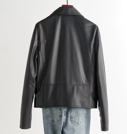 "Women's Genuine Sheepskin Leather Motorcycle Jacket with Suit Collar