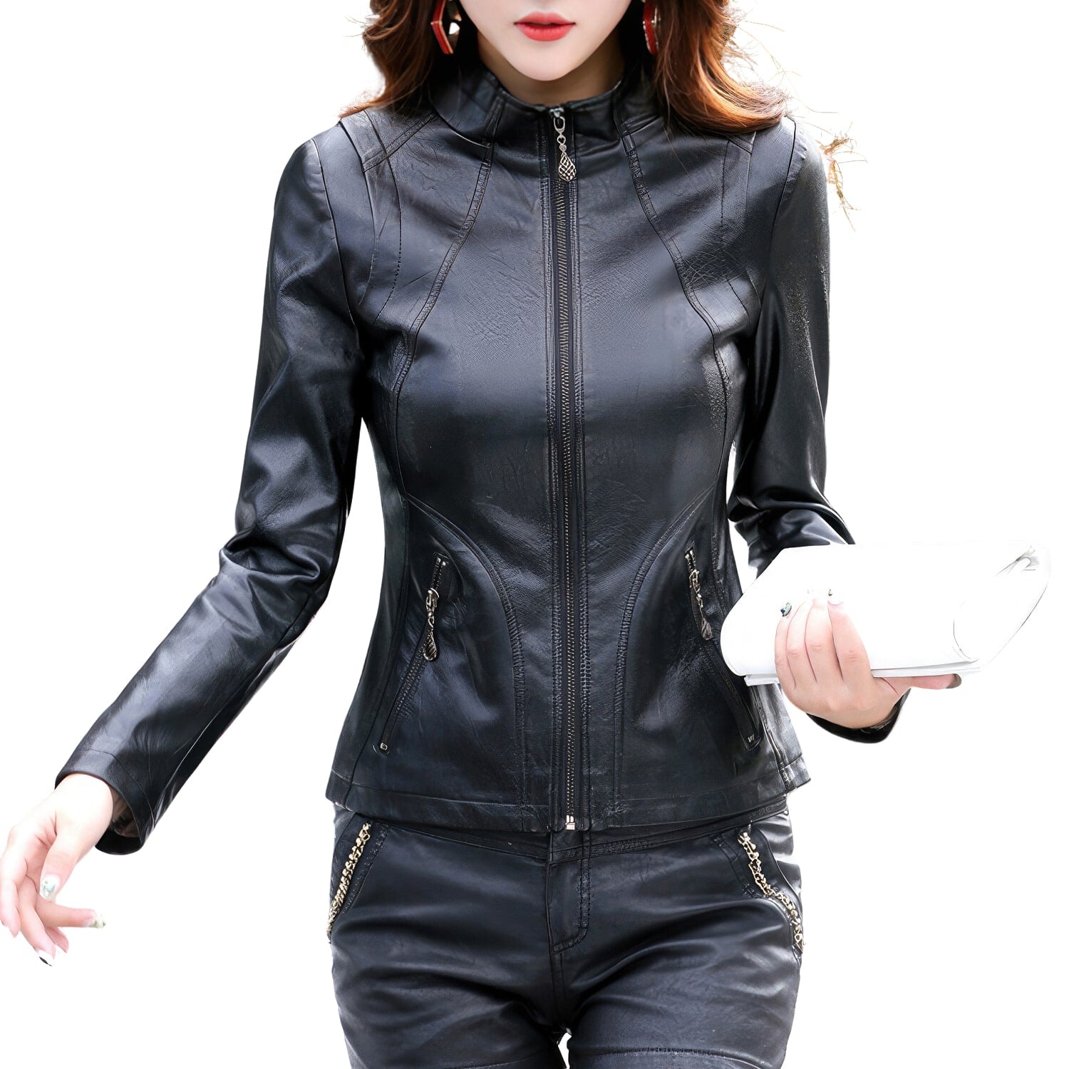 Black Rider Women's Genuine Sheepskin Leather Jacket with Stand Collar - Sporty, Slim Fit, Classic Retro Motorcycle Style